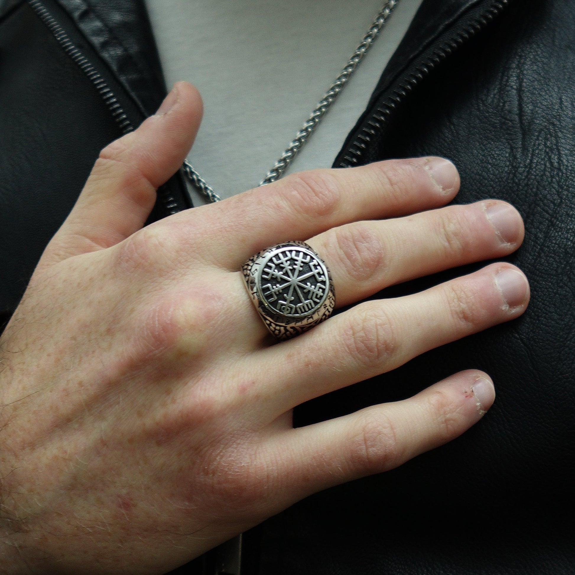Su diseño circular con runas antiguas transmite equilibrio y determinación, recordando que cada paso forma parte de un destino mayor. Llevar este anillo es más que un gesto estético: es llevar contigo la guía de los dioses nórdicos, un símbolo de orientación y fortaleza para quienes nunca se rinden.