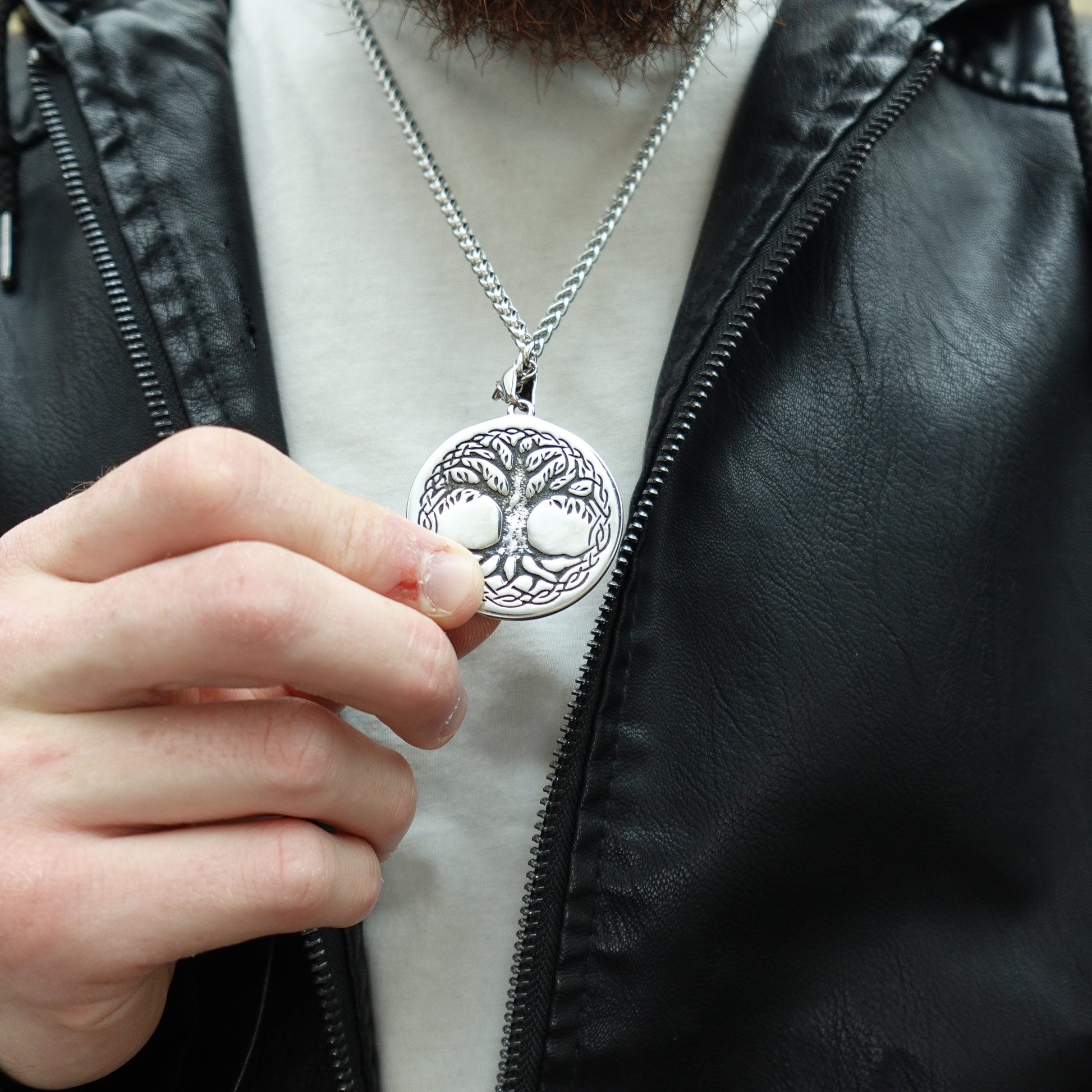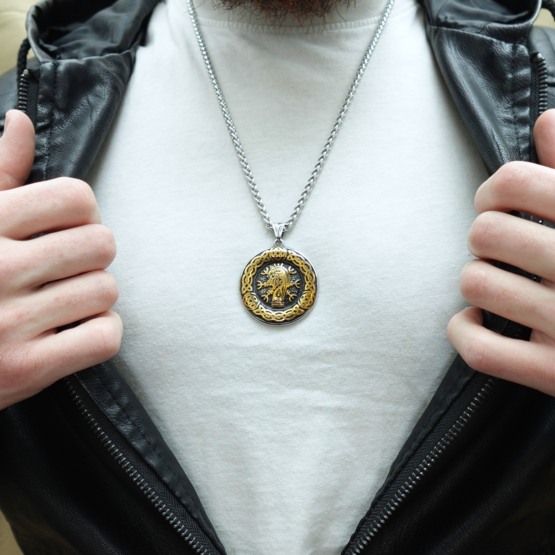 Además, la presencia del Árbol de Yggdrasil en el diseño agrega una capa adicional de significado. Este árbol cósmico conecta todos los reinos y representa la vida, la muerte y el renacimiento. El "Collar Amuleto Protección" no solo es una joya, sino también un recordatorio tangible de la conexión entre el poder protector del Aegishjalmur y la vida eterna simbolizada por Yggdrasil.