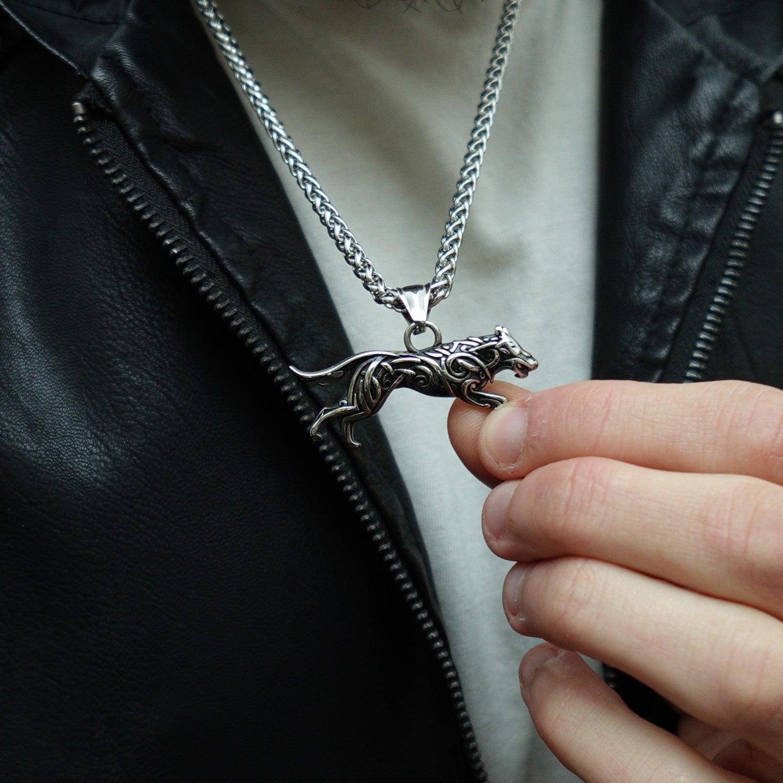 Este collar no solo es una joya, sino un tributo a la libertad suprema. La representación del lobo en plena carrera evoca la potencia desencadenada de Fenrir, recordándote la valentía de desafiar las limitaciones impuestas. Llevar el "Collar Bestia Libre" es llevar consigo la energía de la libertad, una joya que rinde homenaje al espíritu indomable de la bestia legendaria.