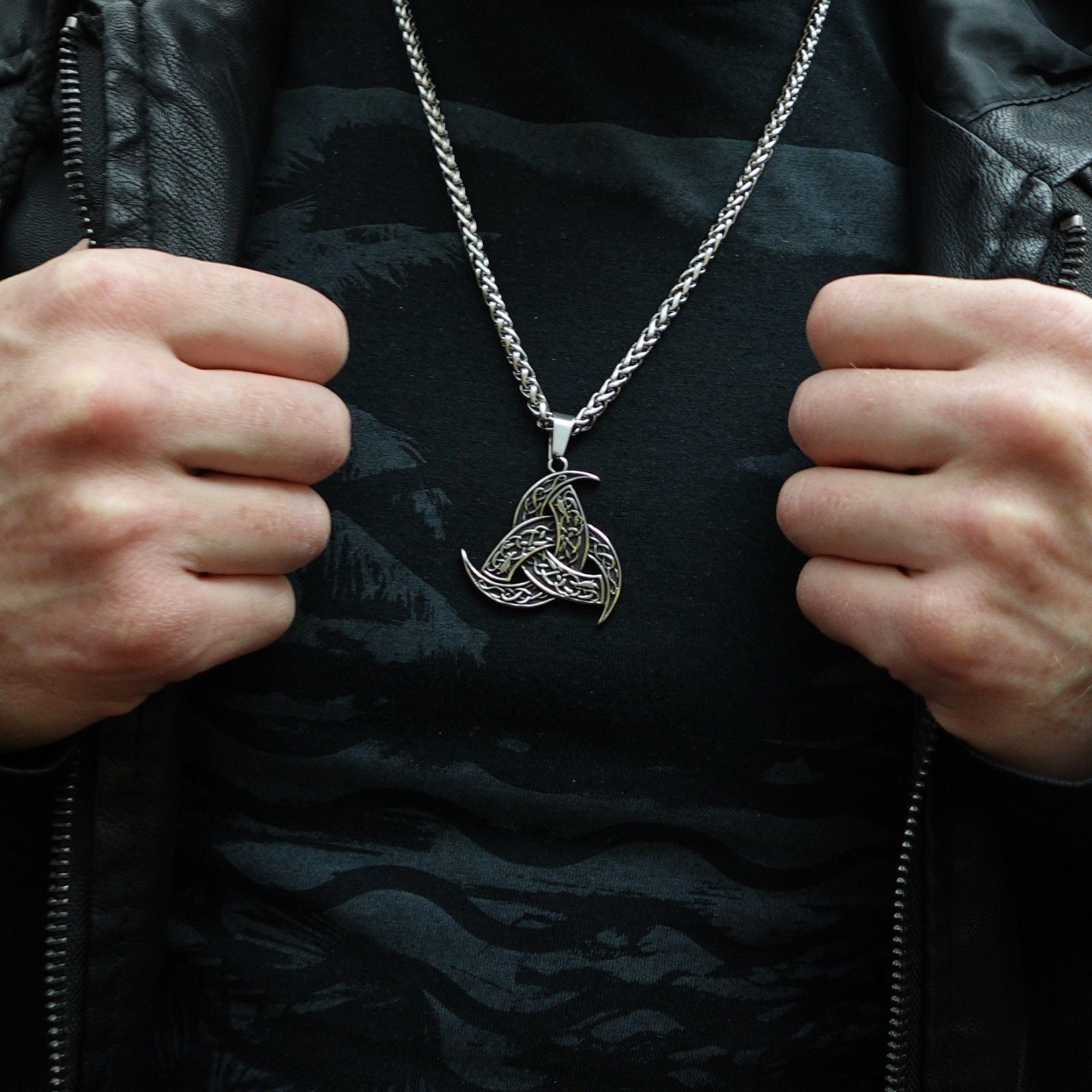 El diseño del colgante incorpora la Trinqueta de Cuernos, también conocida como Triqueta Horned Triskelion.
