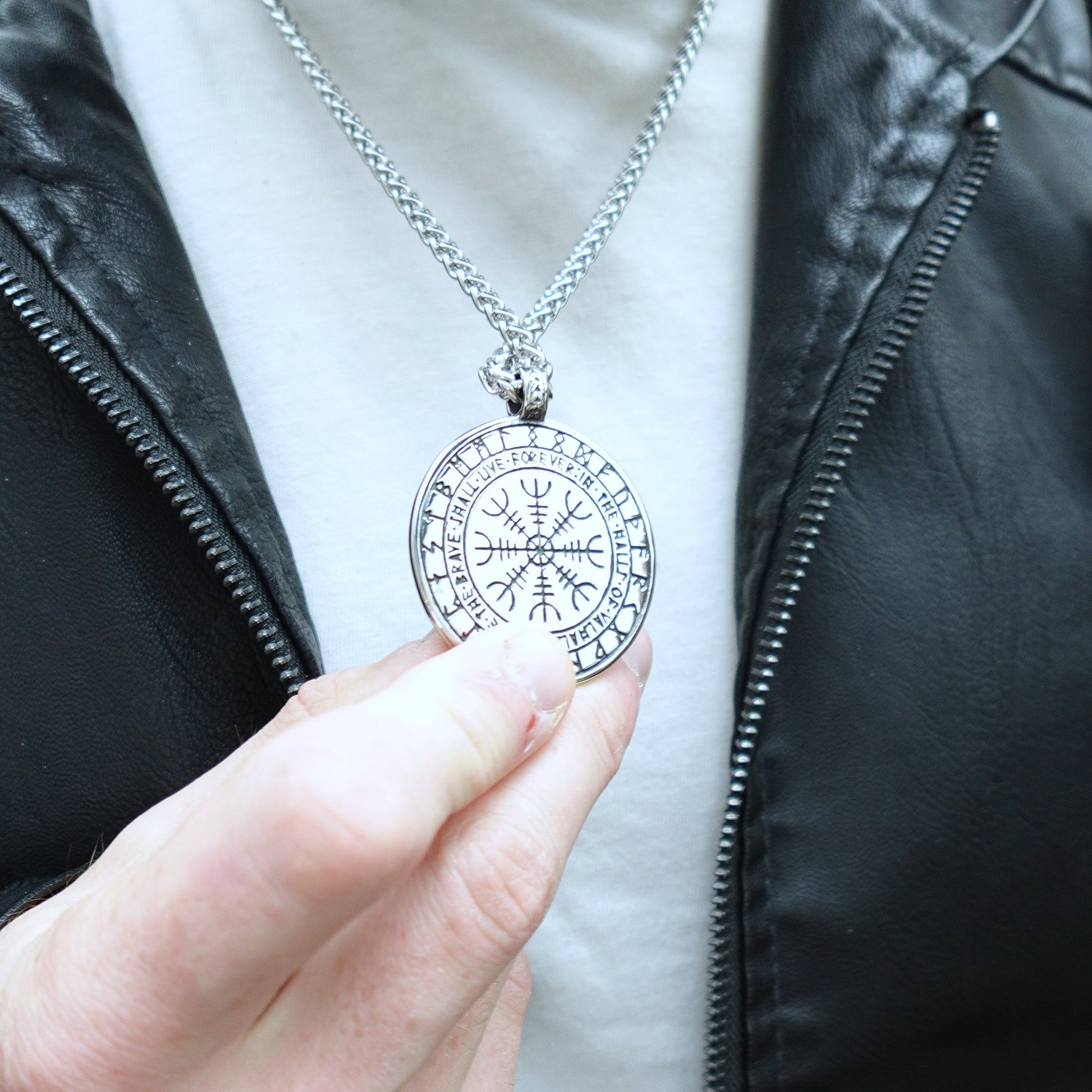 Presentamos el "Collar Escudo Sagrado": Una joya única que incorpora el Aegishjalmur, también conocido como el "Helm of Awe" o "Helm of Terror". Este antiguo símbolo nórdico es reconocido por su asociación con la protección y el misterio. El "Collar Escudo Sagrado" no solo es una joya elegante, sino también un amuleto que invoca la fuerza protectora del Aegishjalmur.