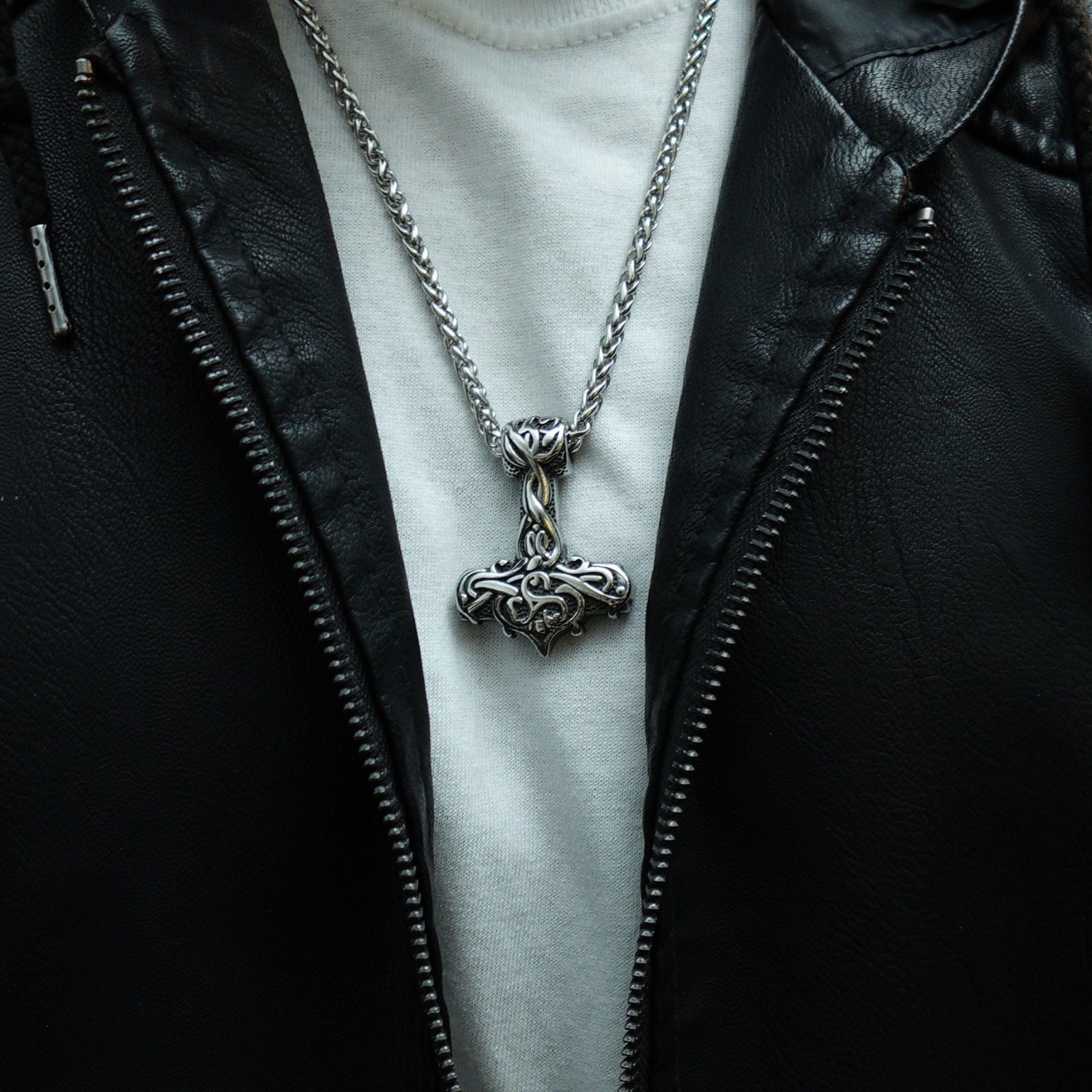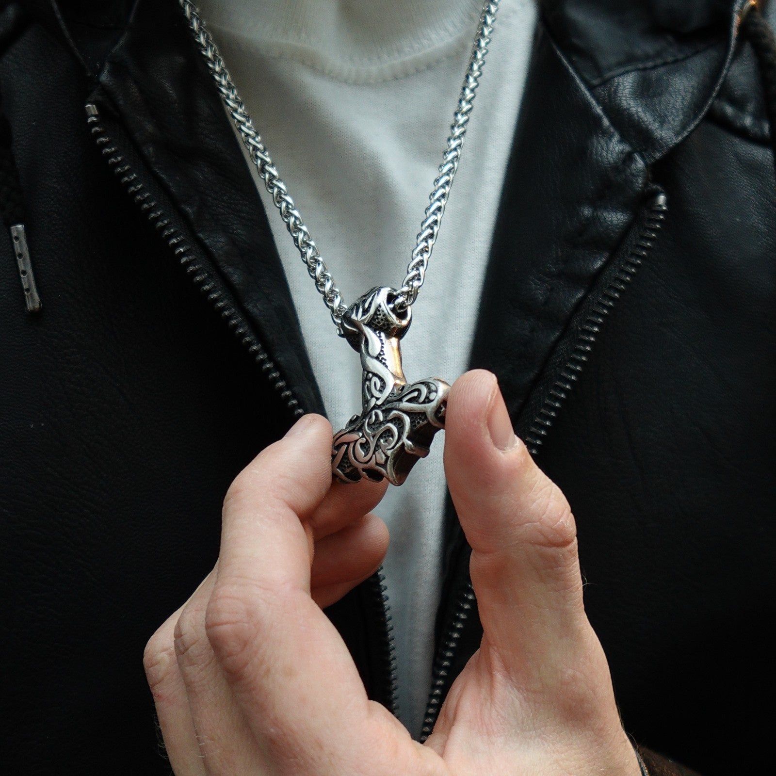 Les presento el "Collar Fuerza Intrincada": Una impresionante pieza de acero quirúrgico, con una cadena de 60 cm y un dije de 4 x 3 cm. Este collar fusiona el poder simbolizado por el martillo de Thor con la complejidad de enredaderas que lo cubren. Cada detalle intrincado de las enredaderas representa no solo fuerza, sino también la complejidad y la intriga que acompaña a la verdadera fortaleza. Llevar el "Collar Fuerza Intrincada" no solo es un gesto estilizado, sino también una declaración de la fuerza intrépida que se encuentra en la complejidad de la vida.