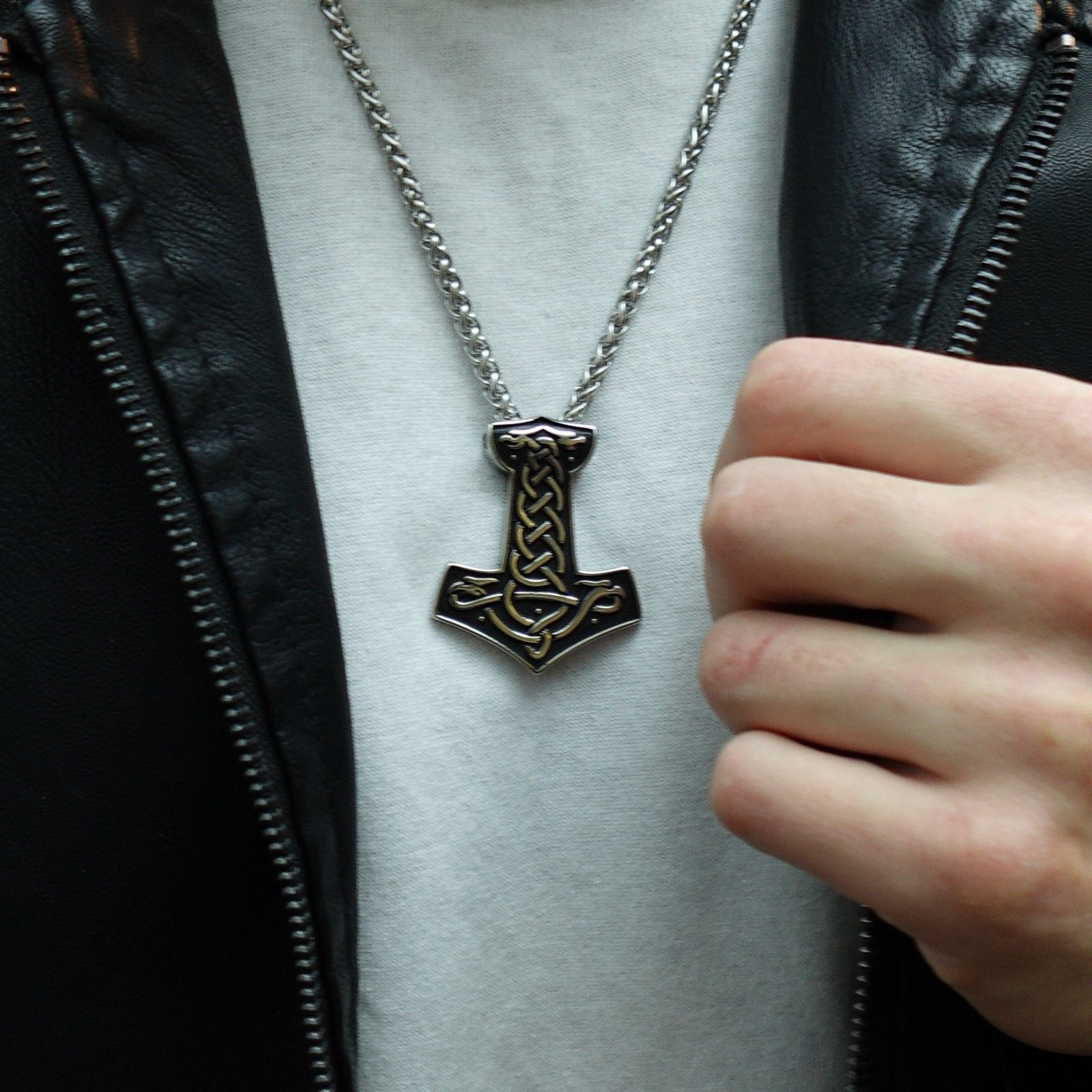 Te presento el "Collar Fuerza Rayo": una joya impresionante de acero quirúrgico con, y destaca un símbolo especial: el martillo de Thor. Este collar no es solo una pieza bonita, sino que tiene un significado interesante. Resulta que en la mitología nórdica, Thor es un dios asociado con el trueno y la fuerza, y su martillo es símbolo de su poder. Se creía que cuando se veía un rayo era el mismísimo Thor usando su martillo. Así que, al llevar este collar, es un poco como llevar un recordatorio de esa energía fuerte y valiente en tu día a día. Un accesorio único que combina estilo con un toque de historia fascinante.