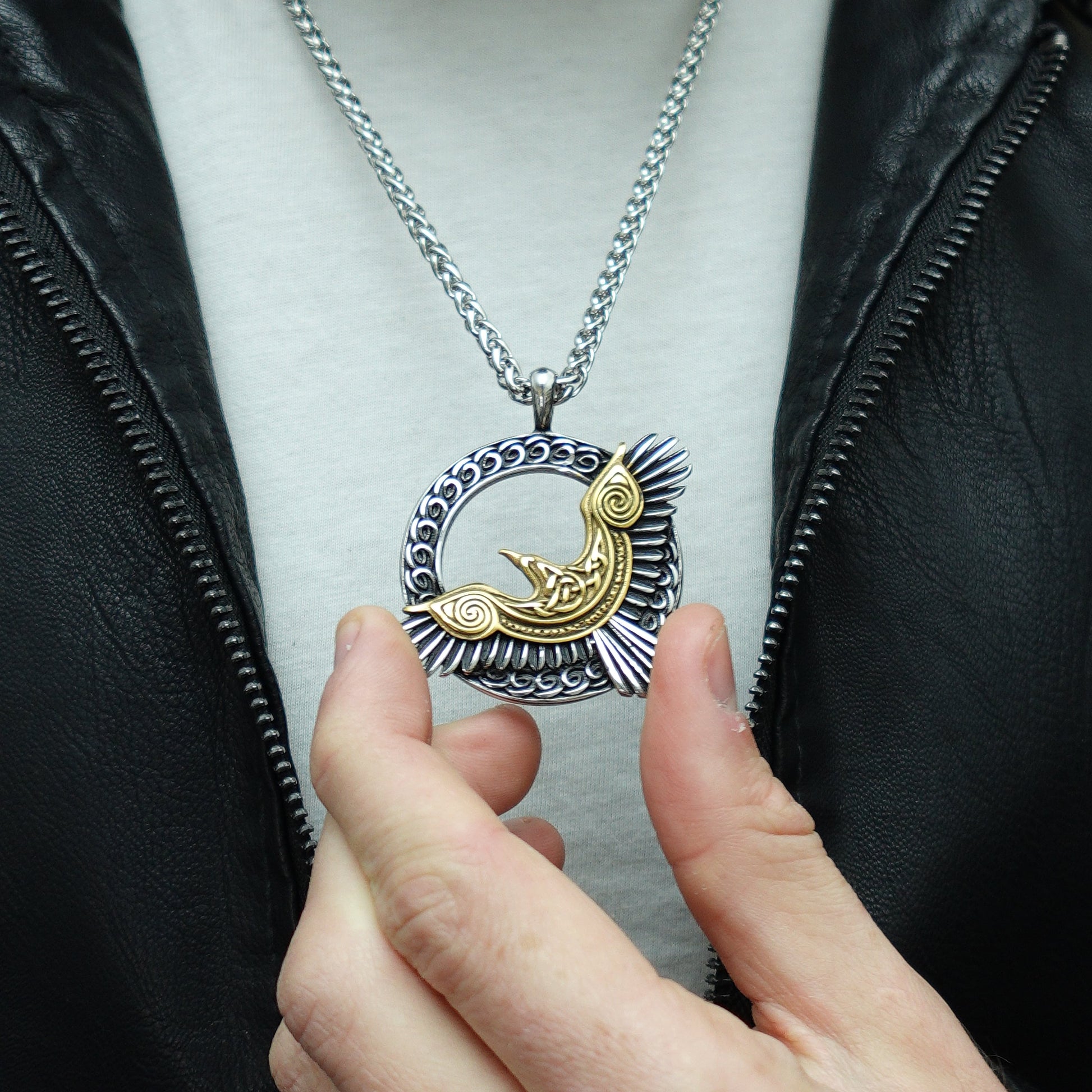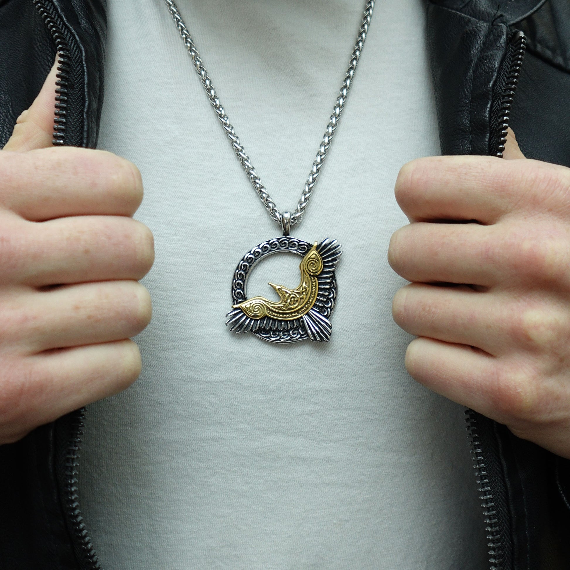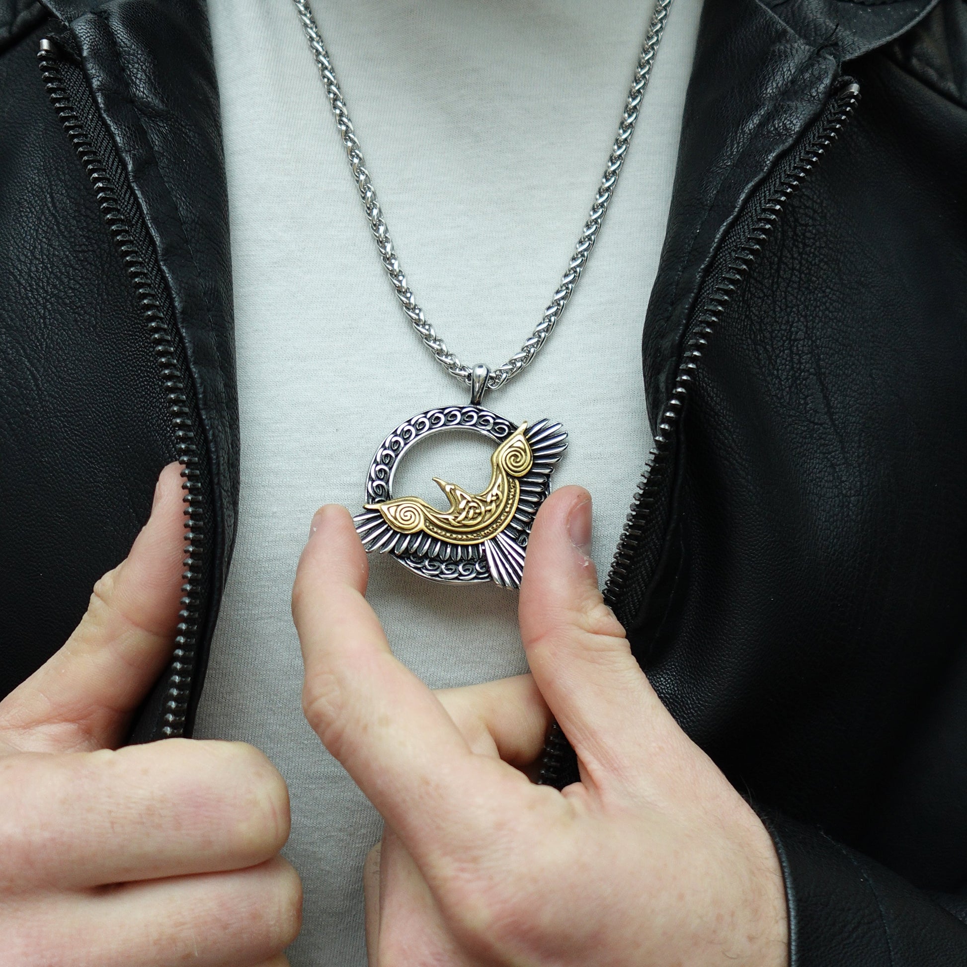 Inspirado en la mitología nórdica, este encantador accesorio de acero quirúrgico y oro 18K presenta alas que rinden homenaje a las criaturas aladas de la mitología. En la tradición nórdica, las aves y seres alados simbolizan la libertad y la conexión con los reinos divinos. Llevar este collar no solo es un gesto estilizado, sino también un vínculo con la esencia mística de la libertad en la mitología nórdica. Un accesorio que añade un toque de magia y libertad a tu estilo cotidiano.