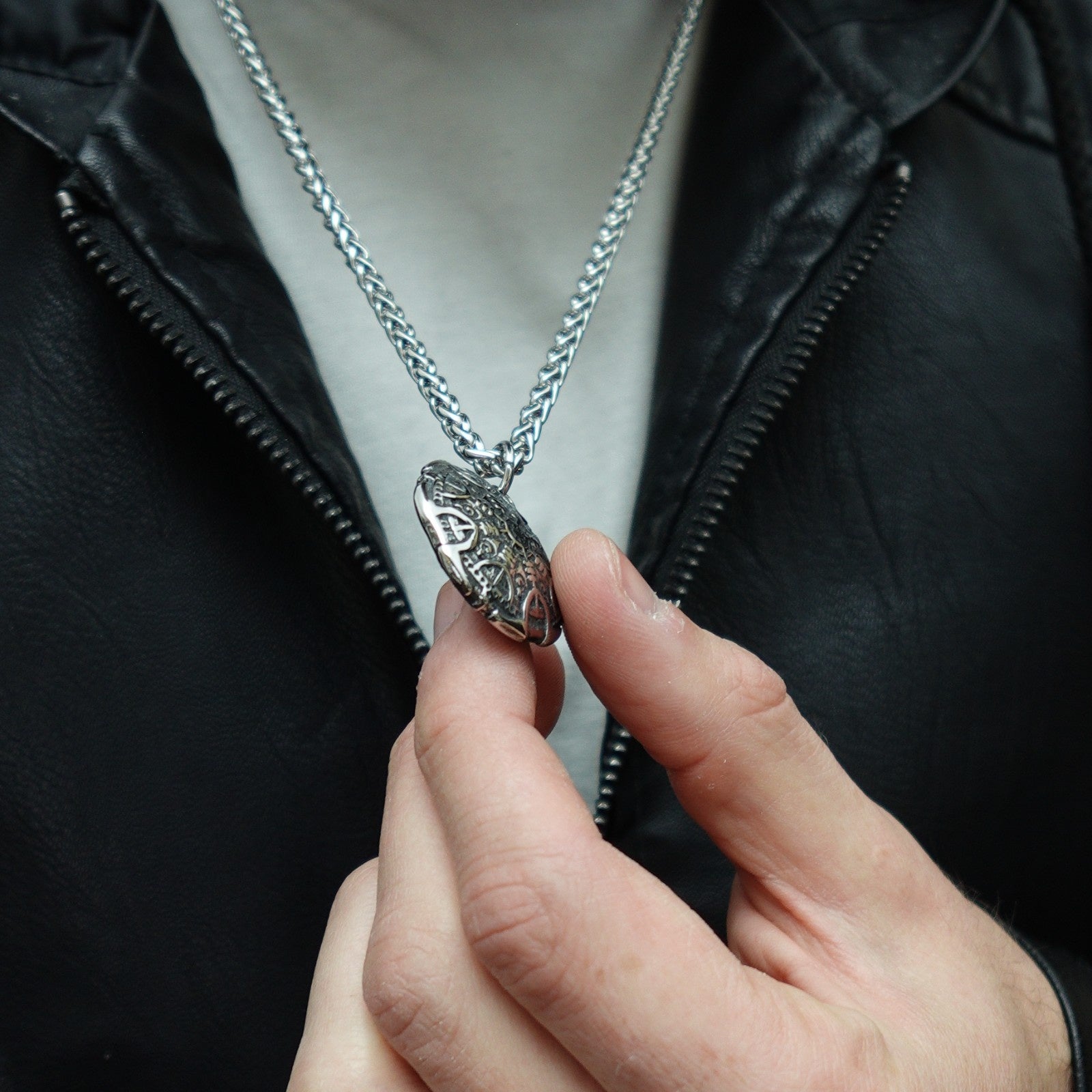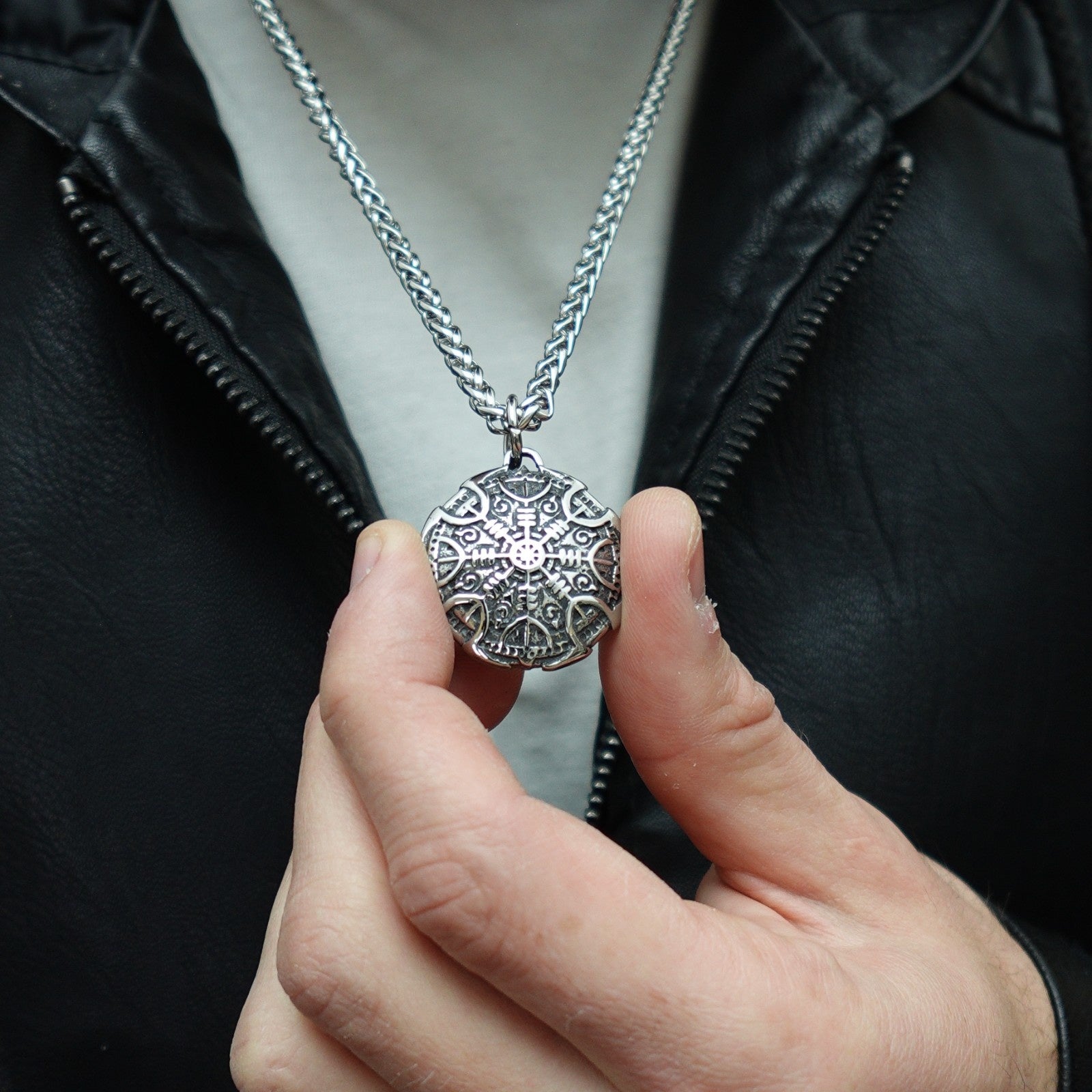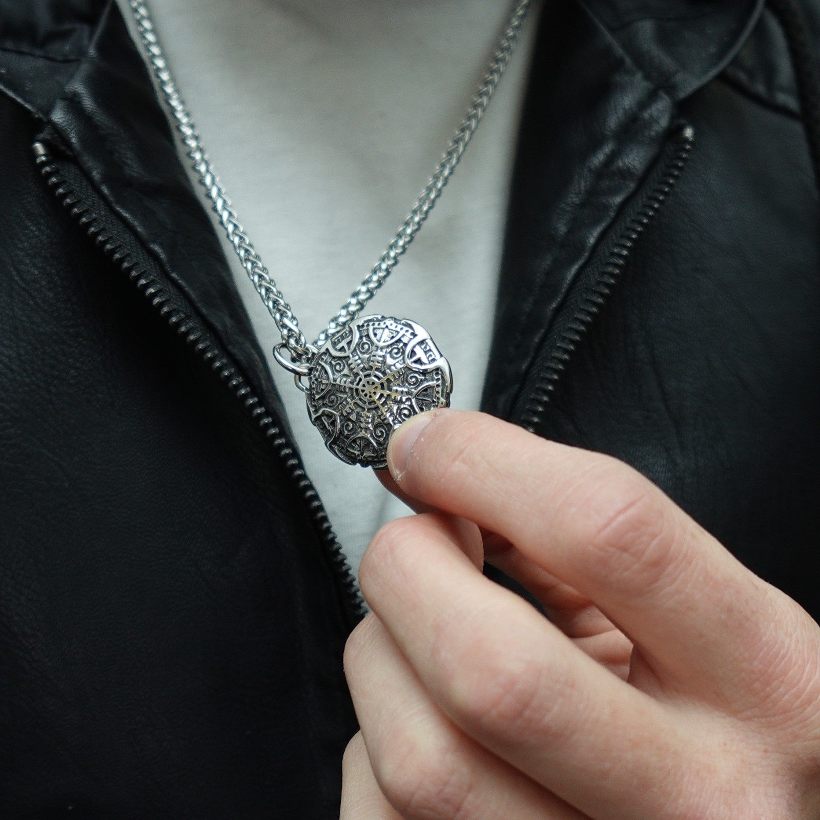 Este collar no solo es una joya de estilo, sino una expresión de seguridad y poder personal. El diseño miniatura lo hace versátil y perfecto para llevar a diario, mientras que el Aegishjalmur representa una defensa simbólica contra las adversidades.