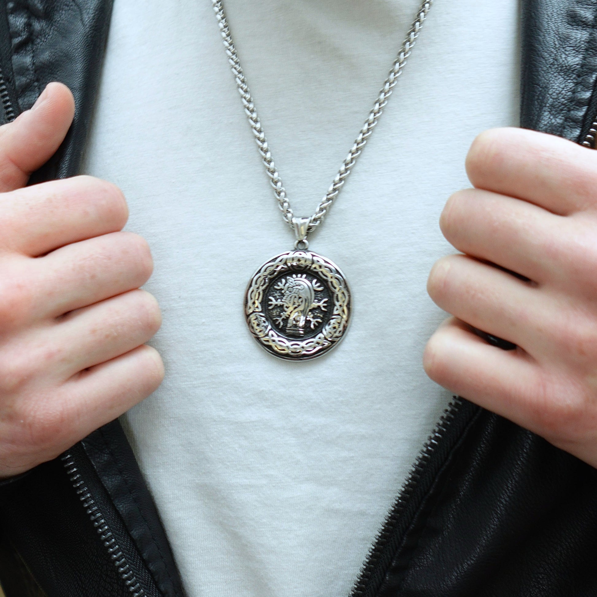 Presentamos el "Collar Raíces de Esperanza": Una joya en la que cada detalle rinde homenaje al árbol del centro del mundo de la mitología nórdica, Yggdrasil. El dije de 4 cm captura la esencia de sus ramas y raíces que se extienden hacia diferentes reinos, simbolizando la conexión cósmica. La cadena de 60 cm asegura que este colgante sea llevado con gracia y comodidad.