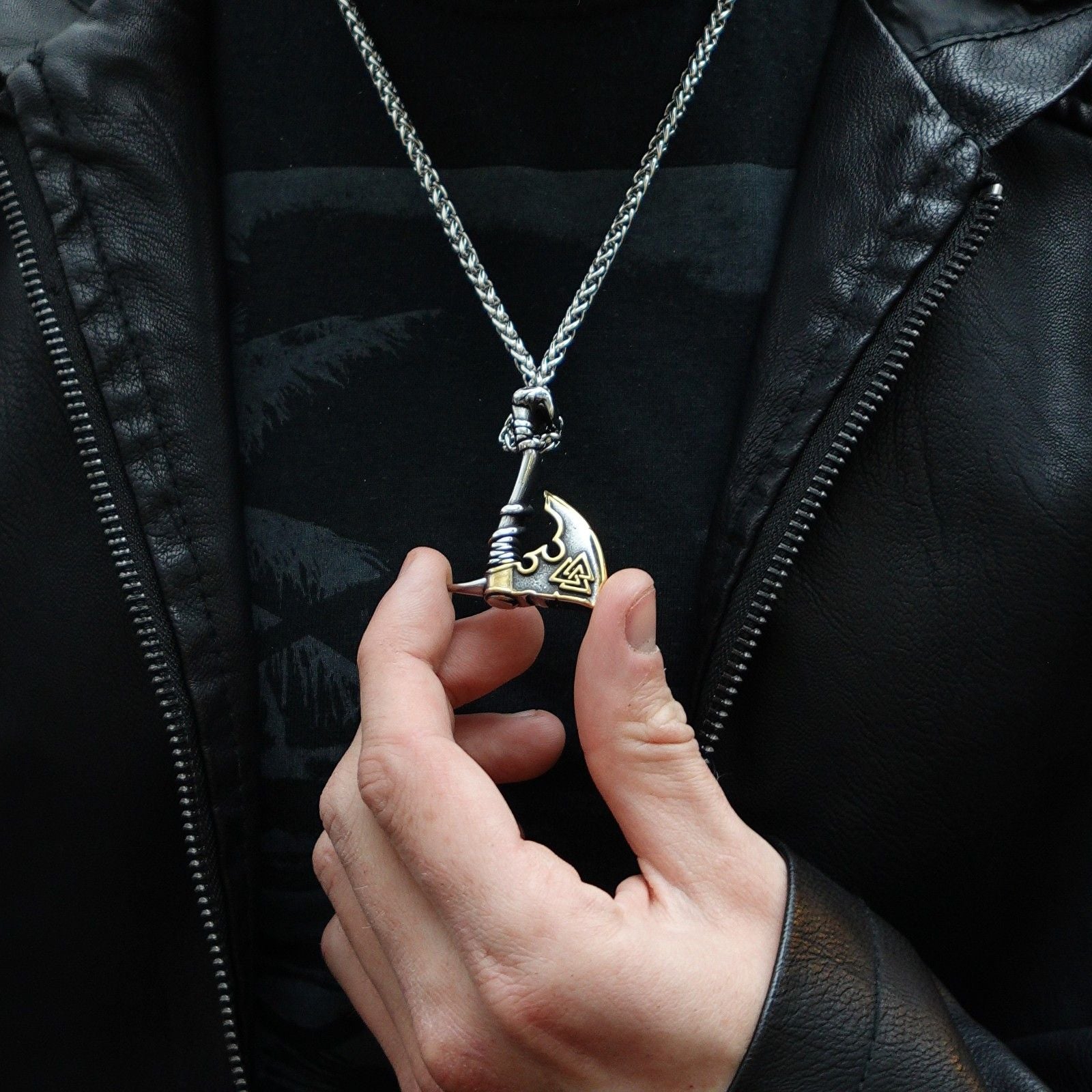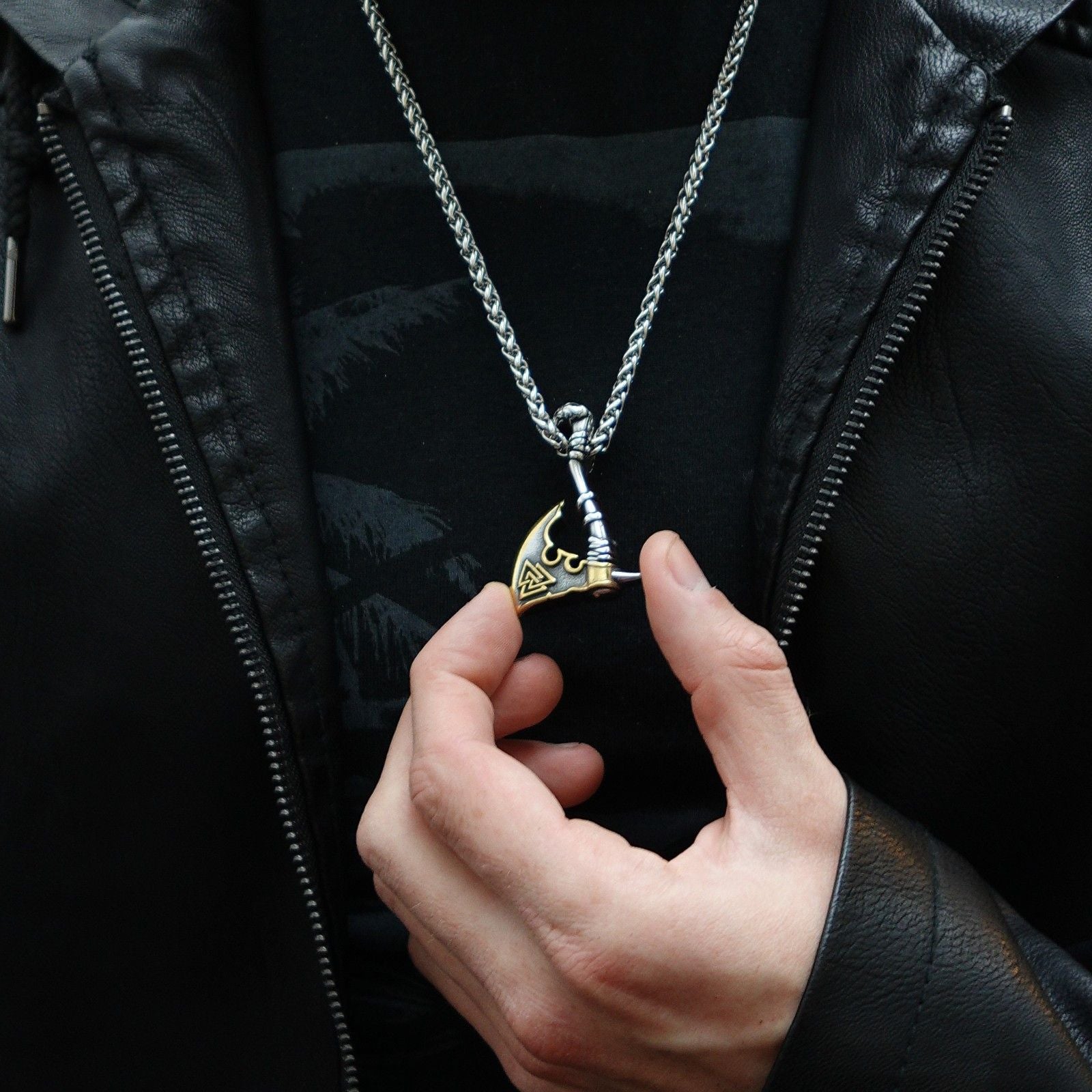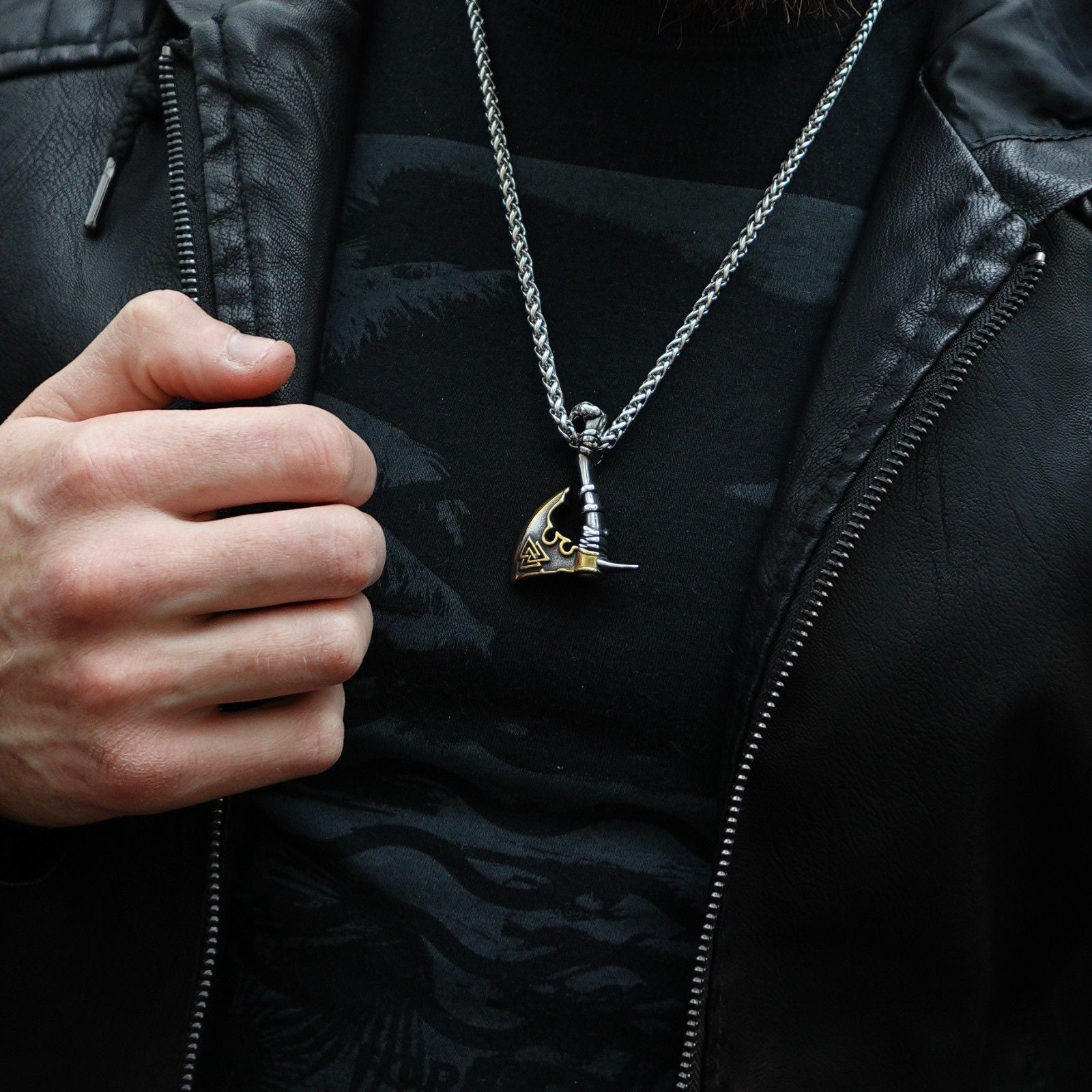 Introducimos el "Collar Guerrero Forjado": Una obra maestra que fusiona un hacha intrépida con el simbólico Valknut, honrando a los guerreros caídos. Este collar no solo es un accesorio, es una declaración de valentía y fuerza. El hacha representa la voluntad de enfrentar desafíos, mientras que el Valknut, símbolo de 3 triángulos, rinde homenaje a los guerreros que dejaron su huella. Llevar el "Collar Guerrero Forjado" es llevar consigo la esencia de la valentía forjada en cada detalle, un tributo a la fortaleza de aquellos que han luchado antes.