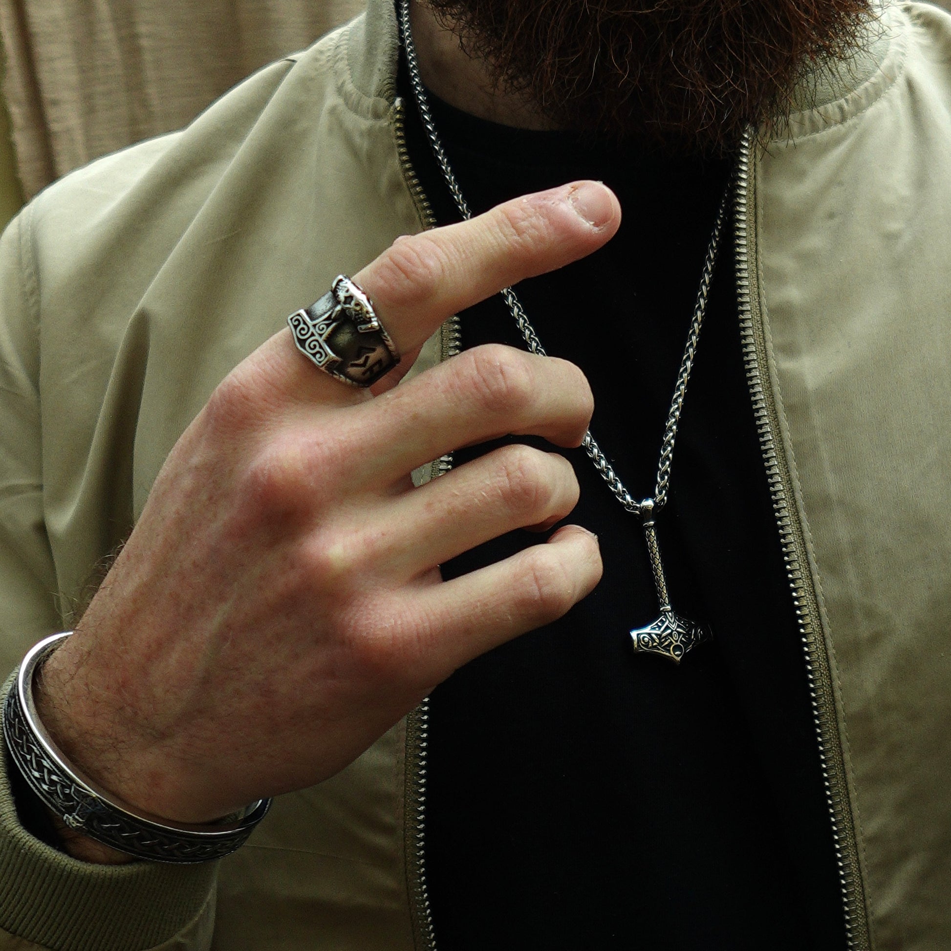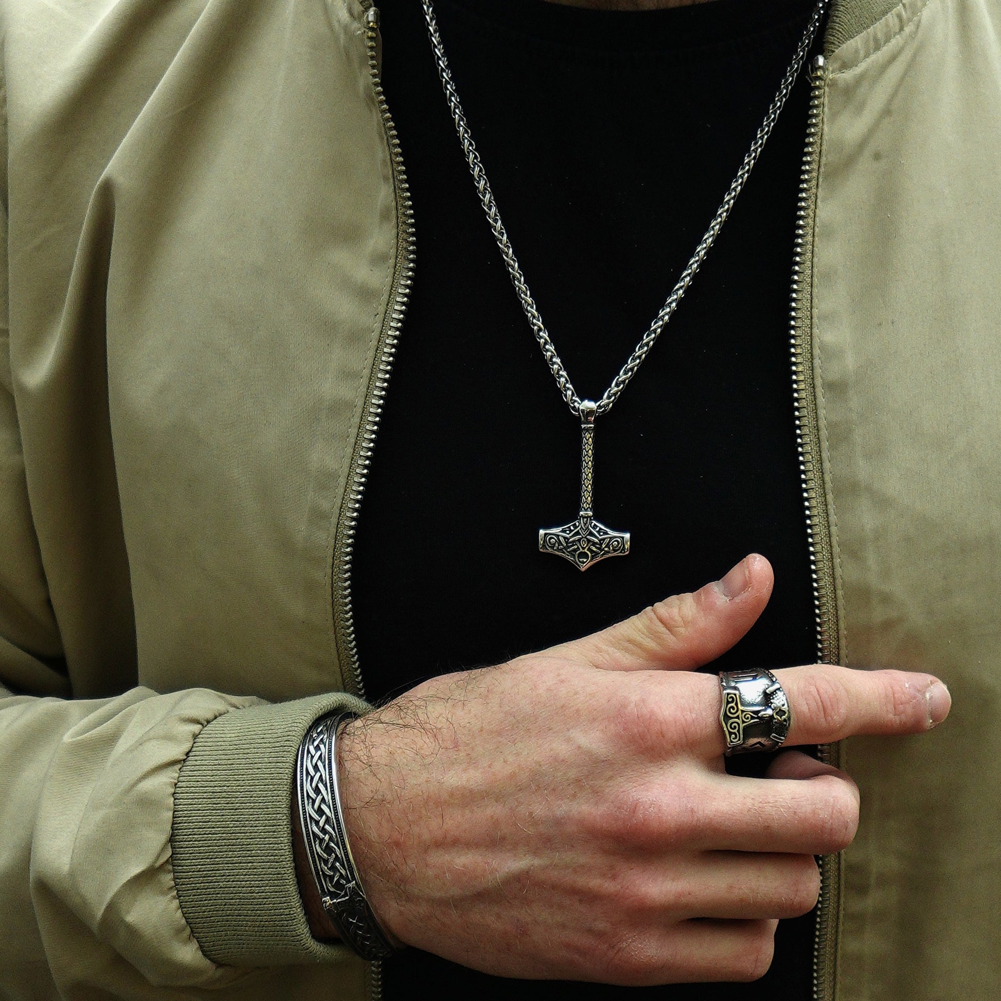 El Pack Thor es una selección de joyas que rinde homenaje al poderoso dios del trueno de la mitología nórdica. Con un collar de martillo de Thor, un anillo, y una pulsera con el símbolo de Mjölnir, este conjunto captura la fuerza y la protección asociadas con Thor. Cada pieza está elaborada con acero quirúrgico de alta calidad, infundiendo a quien las lleva con la energía y la valentía del dios vikingo del trueno y la tormenta.