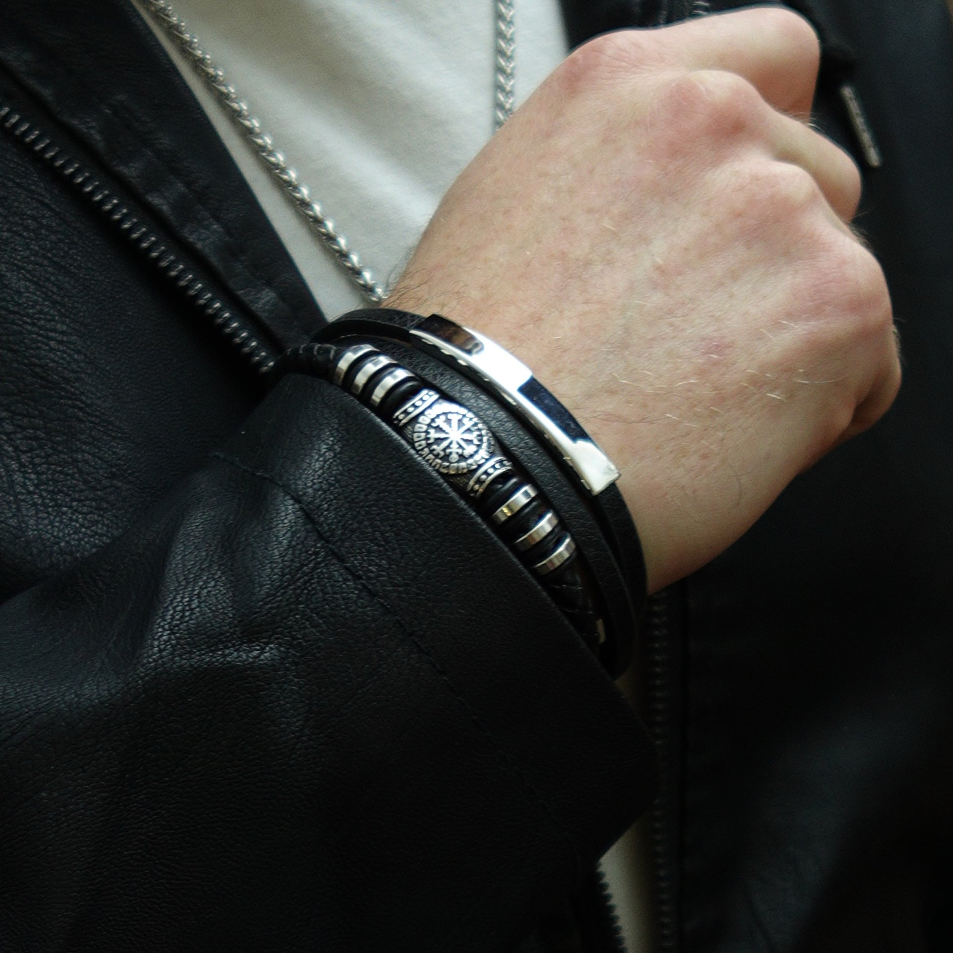 Esta pulsera lleva consigo el simbolo del Vegvisir o conocido como la "brújula vikinga".